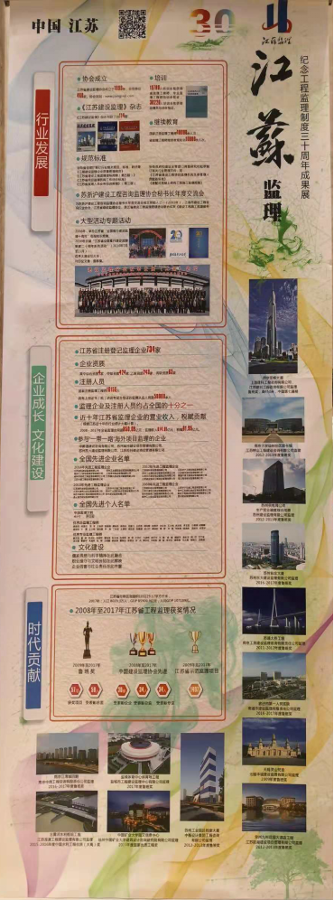 江苏省共有21位代表参加了本次会议。江苏省建设监理协会制作选送的成果展示展板也以其设计新颖、版面简洁而信息容量大,以及可以通过二维码扫描链接丰富内容而独树一帜,倍受关注。